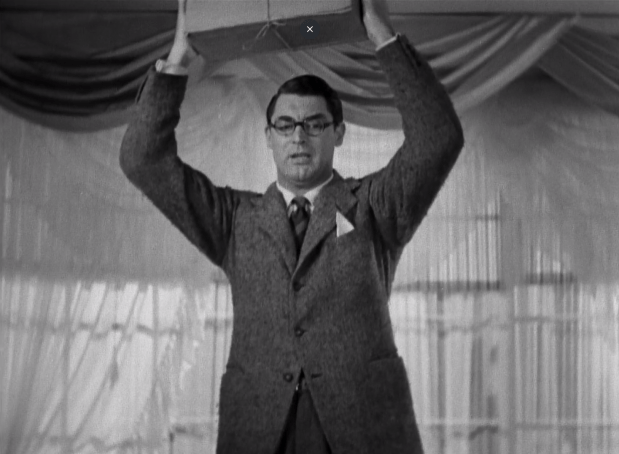 The straight-laced Grant is undone by the weirdness and tries to keep his reputation intact while the wild Hepburn tries to break his defenses and get him to have fun. It’s built on a love story that develops as she keeps telling him he looks attractive without glasses or that he should stay and break his wedding date, but Grant rebuffs her until the obvious point where he doesn’t.